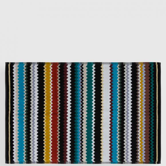 Curt Features a classic Missoni zig-zag pattern, in bold colours. These colours range from a deep black all the way through to a vibrant blue and a bright yellow. With the Missoni logo on the corner of the towel.
