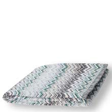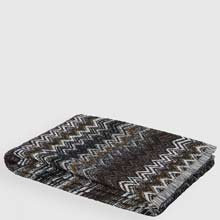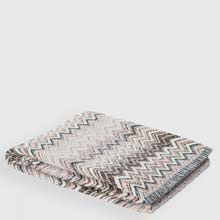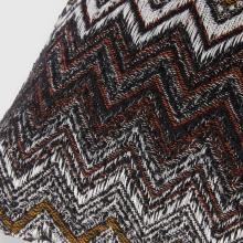 Featuring a range of dark hues, combined with burnt umbers and off-whites. Finished with a fringed edge and Missoni signature zig-zag.