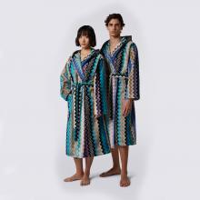 A lovely hooded bathrobe by Missoni, the Giacomo features the trademark Zig Zag Missoni pattern and a most beautiful combination of blue colours.