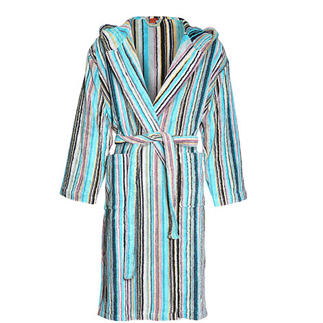 A sensational hooded robe by Missoni, Jazz features a trademark Missoni stripe and superb co-ordination of colours.