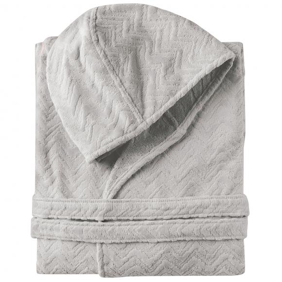 Rex is a Unisex hooded bathrobe in a solid colour cotton terry velour with 3D-effect chevron motif.