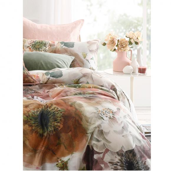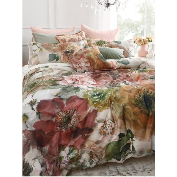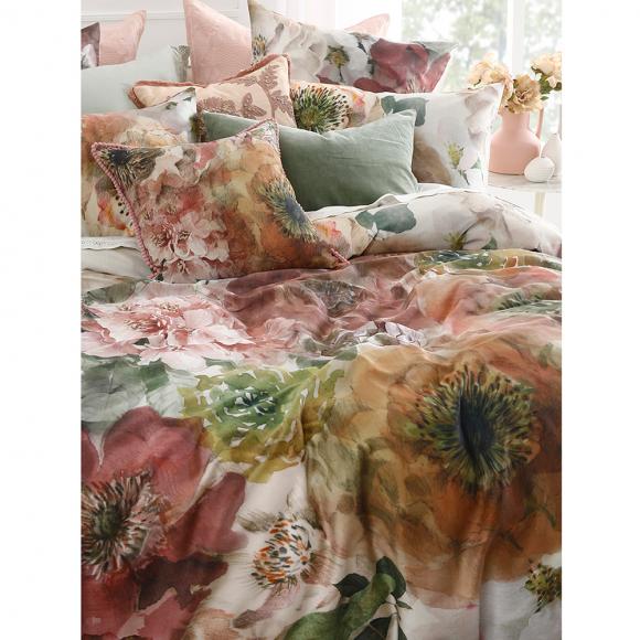 Arlette is a beautiful floral design featuring winter roses in a soft warm colour palette and printed on 220 thread count pure cotton sateen