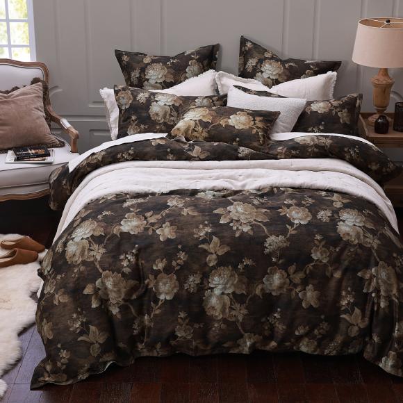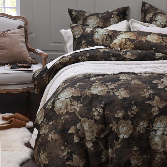 Inspired by classical Renaissance art, the Desdemona Duvet Set is a classic floral design in deep browns and taupes, complementing sophisticated neutral interiors.