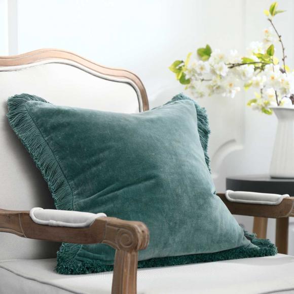 The sumptuous Sabel cushions are a luxuriously appointed plain cushion, beautifully crafted from a luxurious cotton velvet and featuring an elegantly tufted fringe edge.