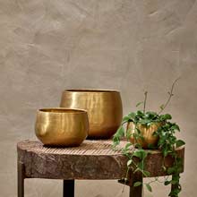 Create an eye-catching display with the Atsu Brass planter collection. These stylish planters have a smooth finish and curved shape. Golden brass hues add to the refined and sophisticated aesthetic. To create the most inviting display, style the planters in trios with a mix of sizes and various house plants.