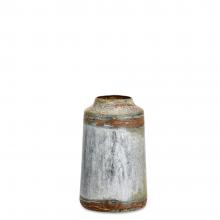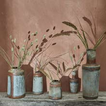 The aged - zinc patina of these rustic vases, gives them an imperfect aesthetic and creates an ideal back drop for flowers and foliage.