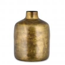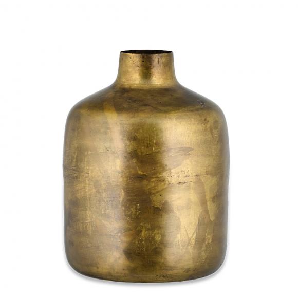 The Boro round iron vase has a smooth simple design and short neck, with the antique brass look of the vase giving it a sense of modern elegance.