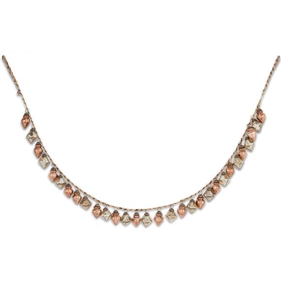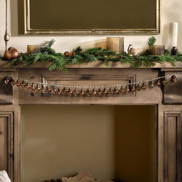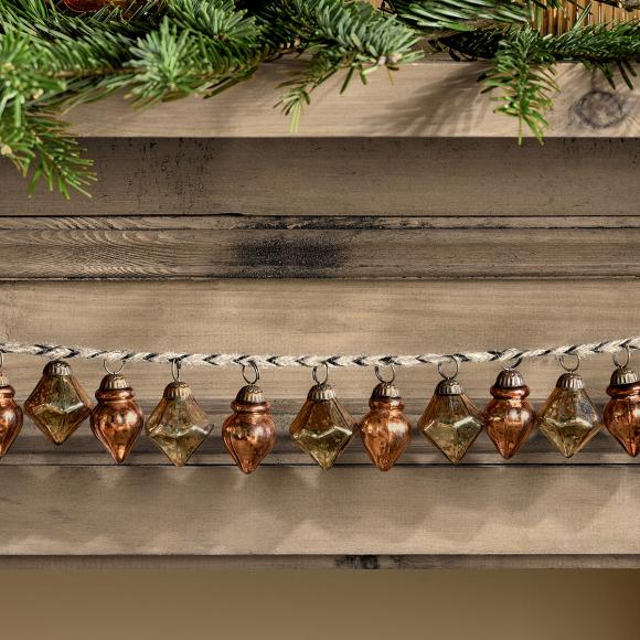 This Ekiti Bauble Garland combines traditional gold tones, with elegantly shaped recycled glass baubles. Strung with a natural jute garland. Accompanied with two practical hooks at each end, this unique bauble garland will be a central piece on a Christmas tree, or strung across a fireplace. The Ekiti Garland is also available in two other colour options.