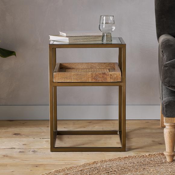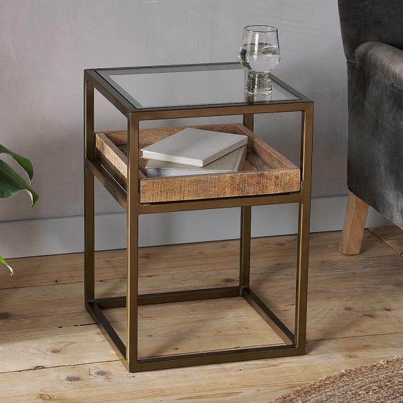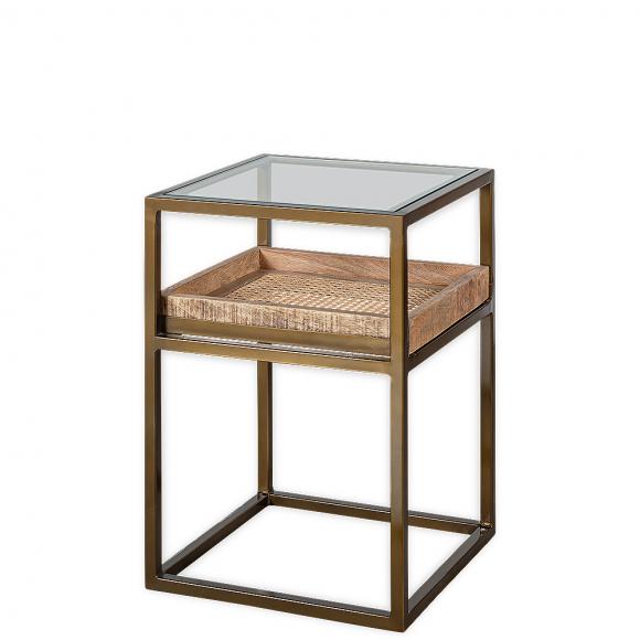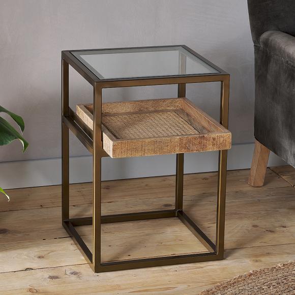 Luzon is a multifunctional and versatile side table from Nkuku. Effortless classic design, paired with stylish glass, and brass-plated iron materials allow for this side table to adopted a sophisticated appeal and design. The lower shelf has a removable mango wood tray and attractive woven cane central panel. Style the bottom tray with found treasures or stack neatly with your favourite books, keeping the top clear for a statement lamp or candles.