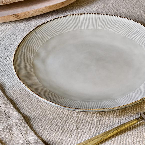 The unique detailing on our Malia dinner plates bring a sense of occasion to the everyday. Handcrafted using traditional methods that have stood the test of time, the products are fired with a reactive cream glaze which responds to the heat of the kiln in any number of unpredictable ways. The end result is a product with distinctive markings and colouration. Our Malia dinner platers are shaped on a potter’s wheel and finished with a stylish linear pattern that is painted onto the rim by hand. Style with the rest of our Malia collection for a sophisticated dining set.