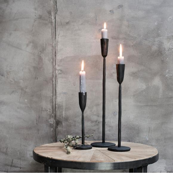 The rustic finish is skilfully created during the soldering process. This affect adds to the aesthetic of the design and compliments the antique black colouring. Mix and match heights for an attractive display.