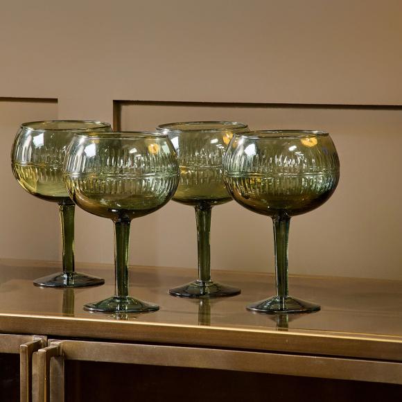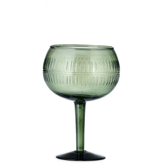The generous, curvaceous proportions of these Nkuku Mila Gin Glasses make them a pleasure to behold. The rich, emerald green colour of the glass and attractive etched detailing adds to the delightful charm of these elegant recycled glasses.