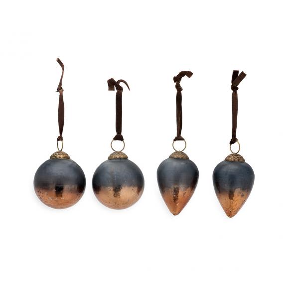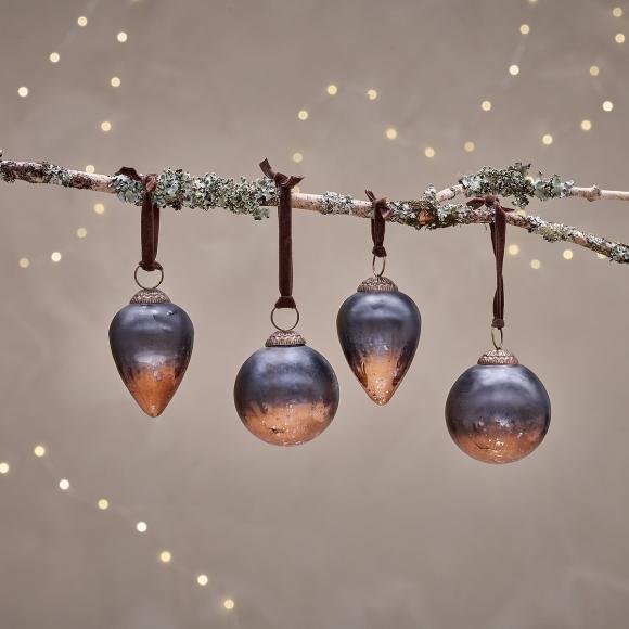 The moody tones of dark smoke and antiuqe copper combine to make a striking decoration in this Nevasa bauble collection.