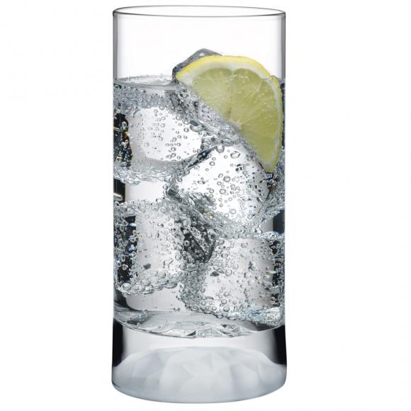 This set of medium high ball glasses is crafted from clear lead-free crystal as part of the NUDE Club Ice collection. Notice the distinct ripple-effect base in a sandblasted, frosted finish which creates a subtle optical effect.