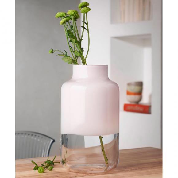 Both striking and elegant, with a crystalline base contrasted by a sophisticated wash of colour, this medium NUDE Magnolia vase is equally suited to be displayed or used as a vessel for floral arrangements. The result exhibits subtle nuances and different characteristics — a demonstration of a series of traditional glass making techniques.