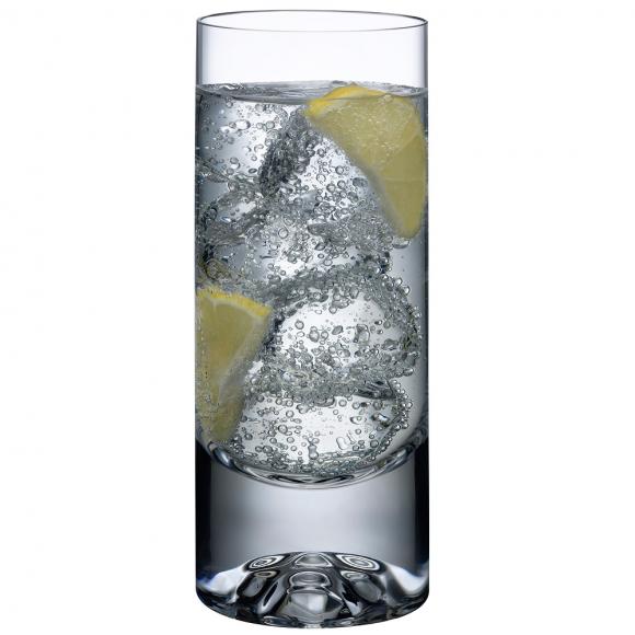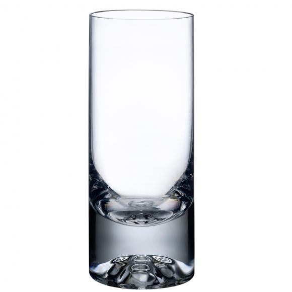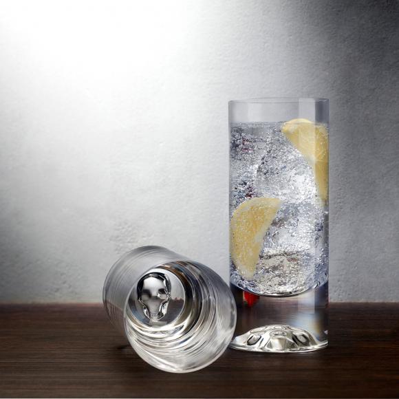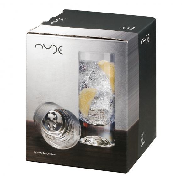 This NUDE Shade set of high ball glasses possess all the defining features of the series: a modern, minimalist shape and a traditional heavy base etched with a sculptural skull motif.