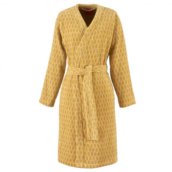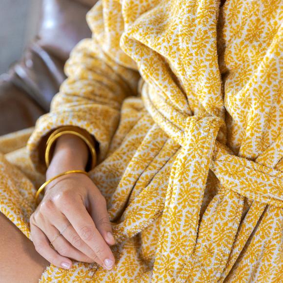 This stylish women's bathrobe pays homage to the Indian culture with its decorative jacquard pattern and vivid ochre tone.
