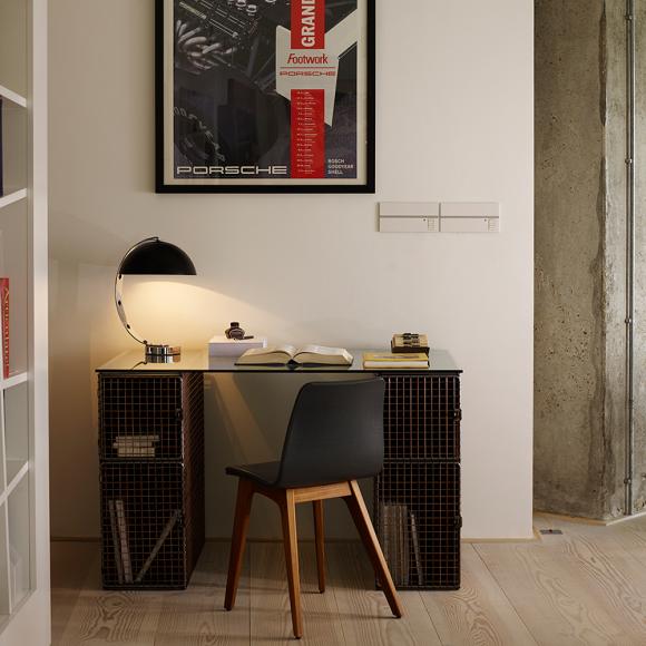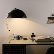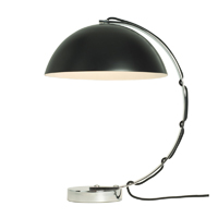 The London table light is retro-flavoured desk light. It features a spun aluminium semi-sphere shade available in black, putty grey, red and yellow with a solid chrome base. Cotton braided flex is woven through the curved chrome arm for a clean-lined, neatly tailored finish.