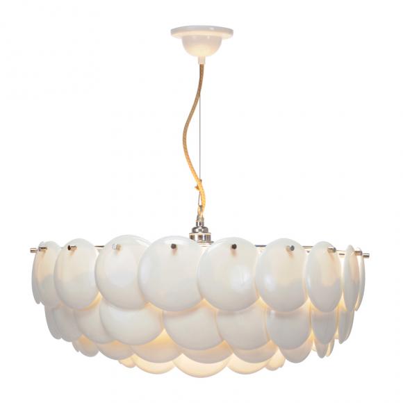 The Pembridge has overlapping tiers of fine bone china, which gently diffuse light to create a soft, atmospheric glow. Available as a floor or pendant light in 3 sizes.
