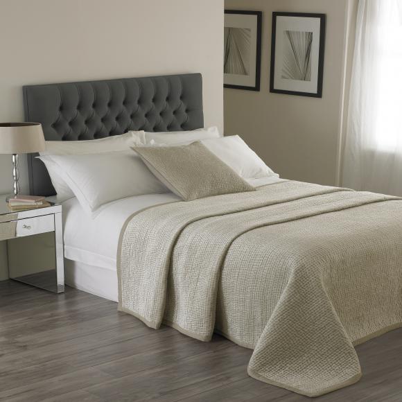 This beautiful bedcover is made using sumptuous velvet with dimple stitching and a linen border.
