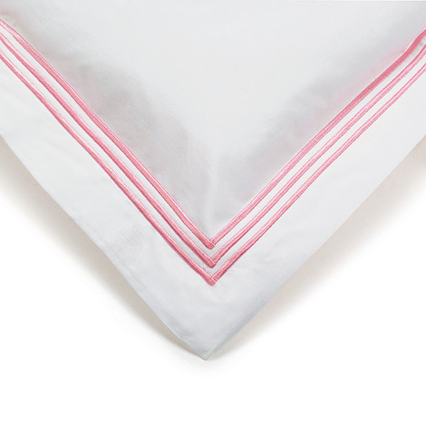 260TC bed linen has three rows of wider satin cording and is made from 100% combed Egyptian cotton percale with 260 threads per square inch. The cording can be made white, cream or coloured. This quality was previously know as "Aqua Ribbon" signifying the presentation ribbon colour that was traditionally tied around the product prior to packaging.