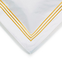 With three splendid rows of wider satin cording, 400TC bed linen is the top of the line. It is made from the finest 100% combed Egyptian cotton super percale with 400 threads per square inch. The Matt cording used can either be White, Cream or Coloured. This quality was previously know as "Burgundy Ribbon" signifying the presentation ribbon colour that was traditionally tied around the product prior to packaging.