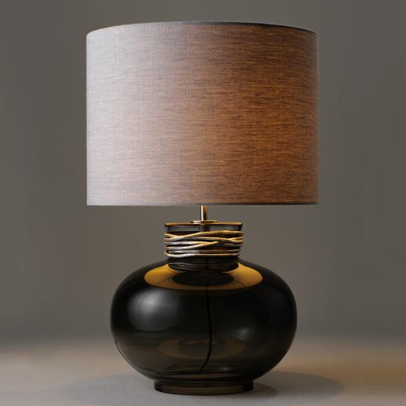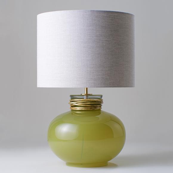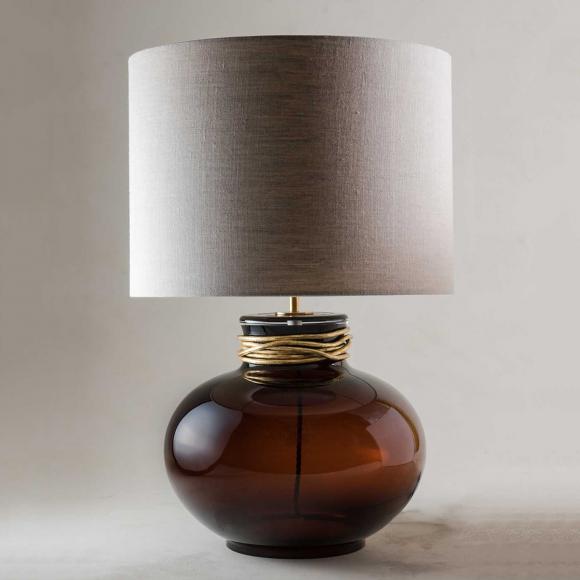 The Boudica Lamp was inspired by a 5,000 year old glass piece, on show at The Museum of Egyptian Antiquities in Cairo. The design is finished with a decorative metal collar, which has been fashioned and twisted by hand.