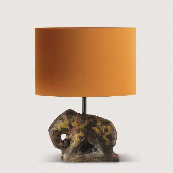 The Elephant Lamp was inspired by a stone sculpture found in Udaipur. The piece is hand-finished in an old paint effect to give it the appearance of an ancient stone sculpture.