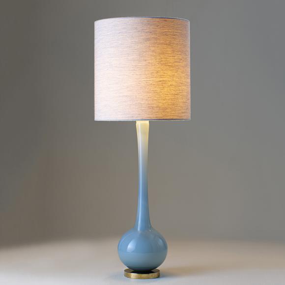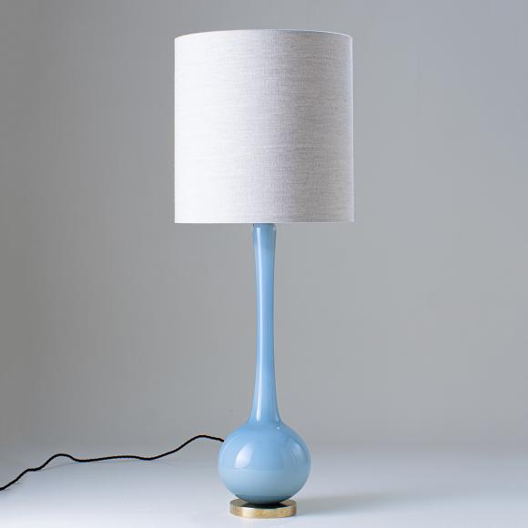 Resembling the organic shape of a gourd vegetable, the Gourd Lamp has an elongated, slender neck and bowl-shaped body. Made from hand-blown glass, each Gourd they produce is slightly different from the next.