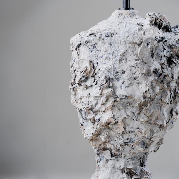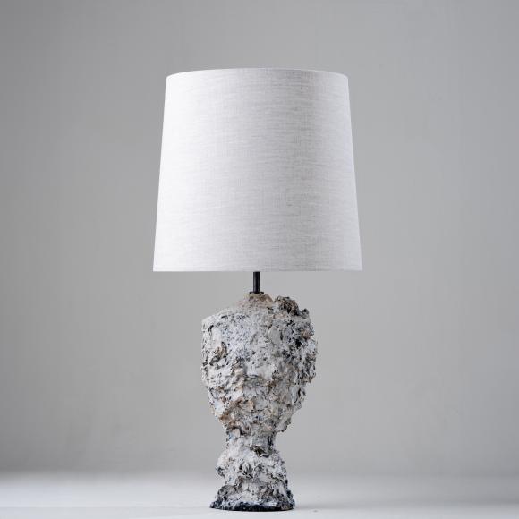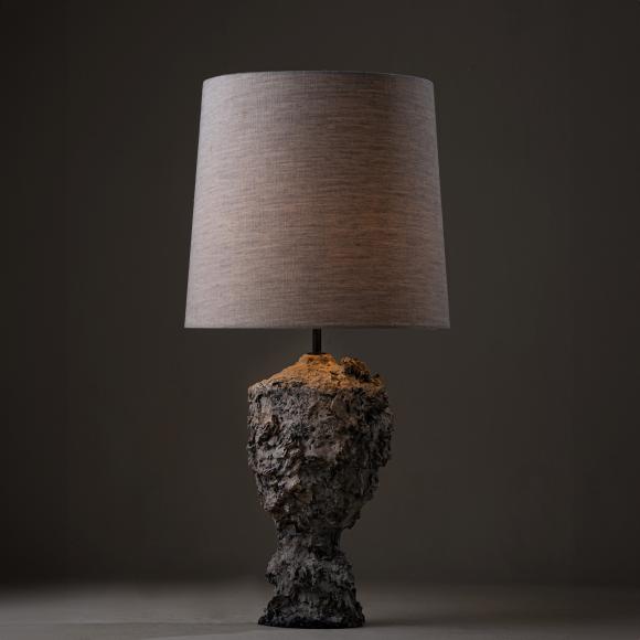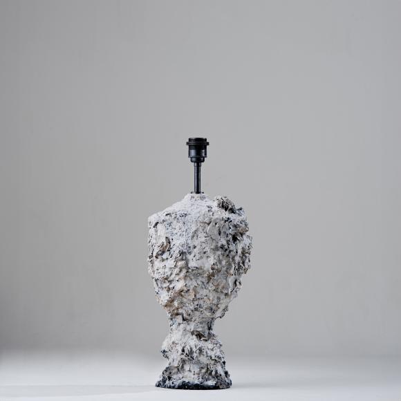 The Ara lamp, crafted in collaboration with artist Maddie Rose Hills, features an irregular texture. Its unique body is carefully cast in jesmonite with ceramic inclusions. Each lamp is meticulously hand-finished in the painting studio, ensuring every piece is unique.