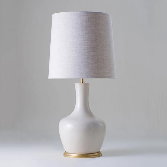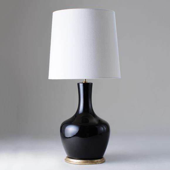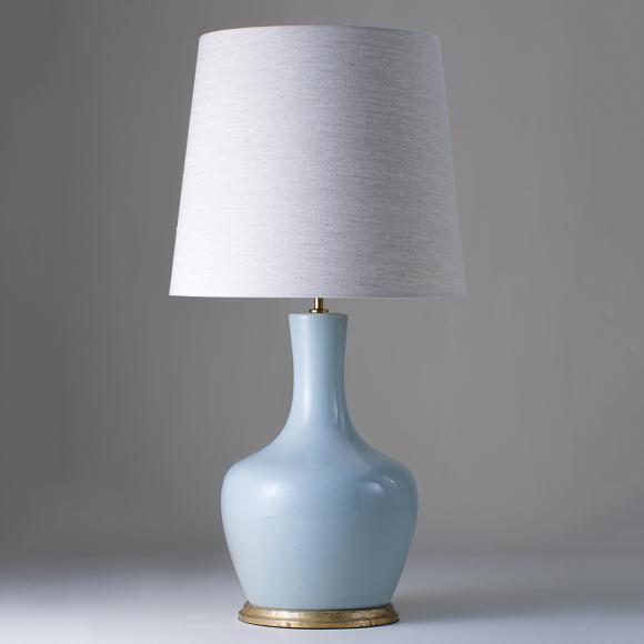 The Rigby Lamp was designed as a classic ceramic lamp with a short neck and a rounded body. Its gilded base provides a contrast to the brightly coloured glaze of the ceramic.