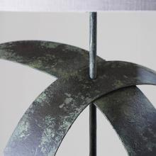 The Rockefeller's design is inspired by the Treble Clef symbol. It is crafted from a single sheet of folded steel, intricately textured and patinated, and mounted on a Cumbrian slate base.