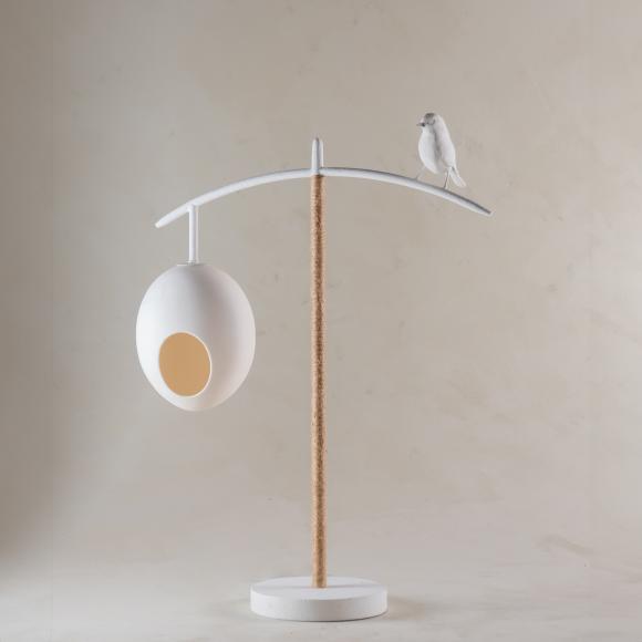 Painted and twine wrapped steel with porcelain cast egg