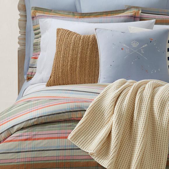 Reminisce over the classics with the Garet Collection from Ralph Lauren. Featuring Oxford Cloth fused with cricket stripes. The madras is traditional of an East Coast Home.