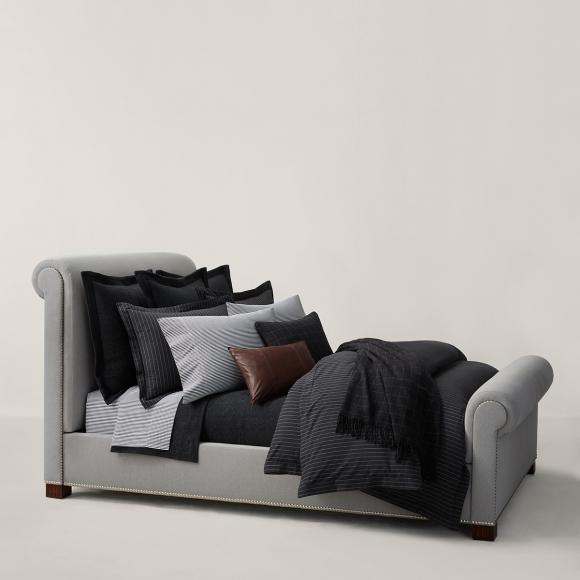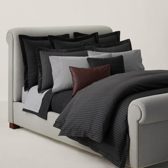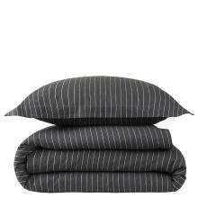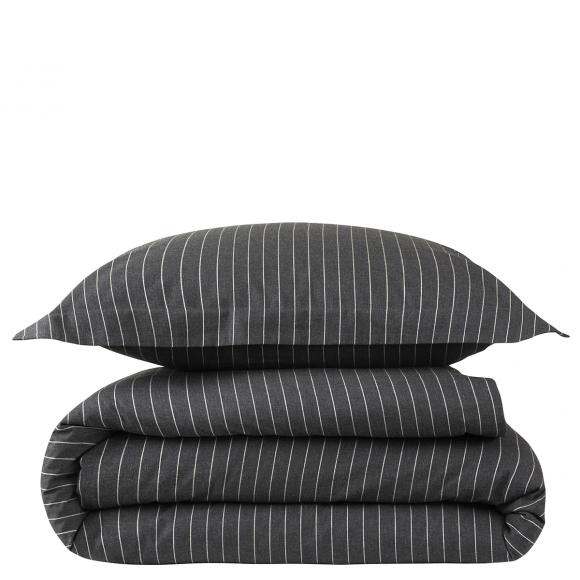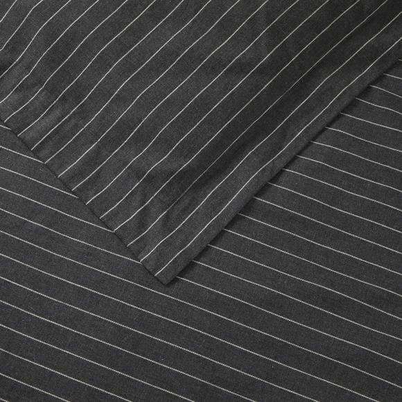 This duvet cover is a part of the Modern Driver collection from Ralph Lauren. Based on traditional pinstripe menswear suiting, this collections textured charcoal stripes are layered with qualities that reflect luxury and chicness. Its aesthetic has a regard for the minimal, timeless elegance.