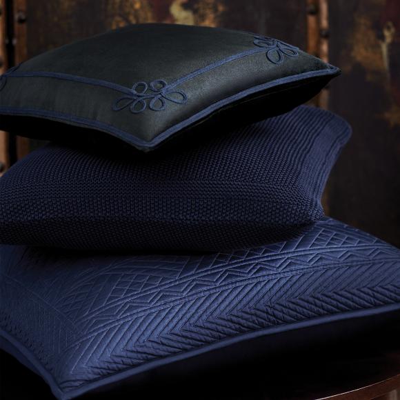 A perfectly luxurious add-on to your bedding scheme, this plush velvet cushion case is framed in braided trim reminiscent of traditional soutache embroidery.