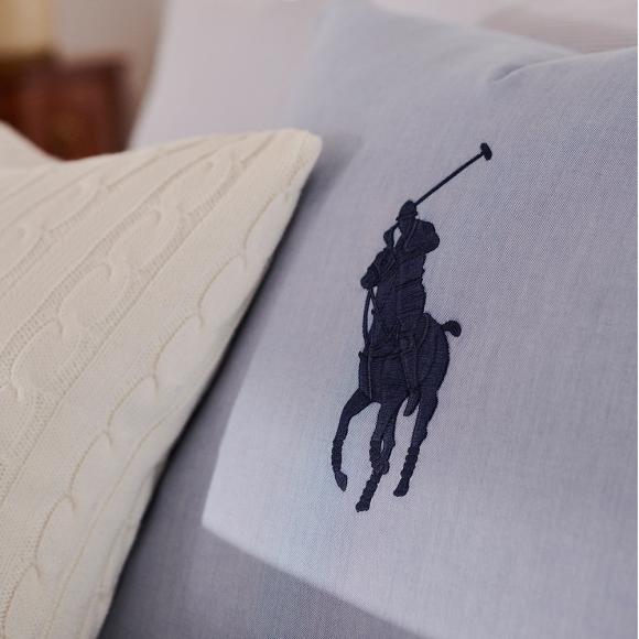 An elegant cushion cover by Ralph Lauren, created by joining two much-loved products from the brand's range - the Oxford bed linen collection and the RL Pony cushion covers.