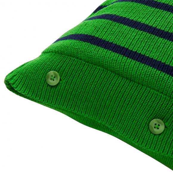 Add the finishing touch to the Summer Hill bed linen collection with this vibrant cushion cover by Ralph Lauren. The design features horizontal blue stripes against a bottle green background, creating a bold and sporty look. The design is the same on the reverse.
