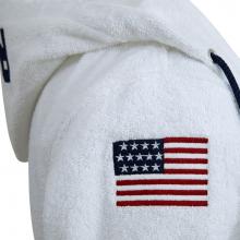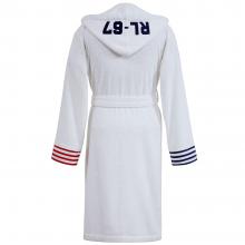 Travis is one of our very favourite robes, featuring contrasting stripe embroidery on the cuffs, flag embroidery on the right sleeve and RL 67 embroidered on the hood.