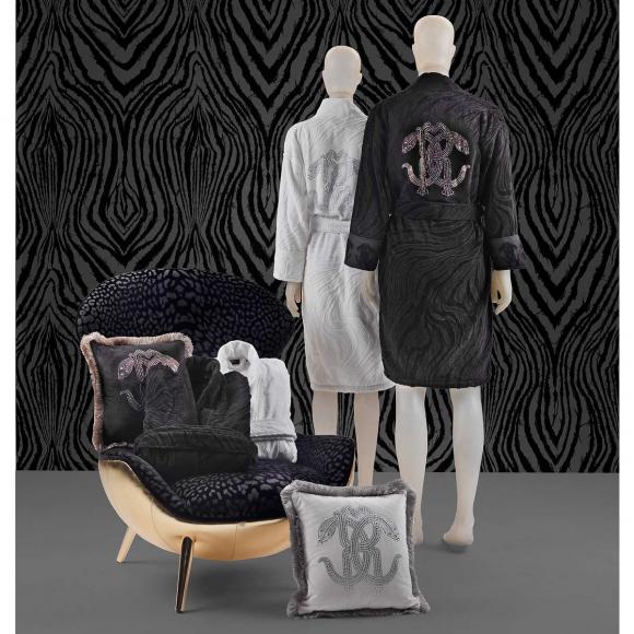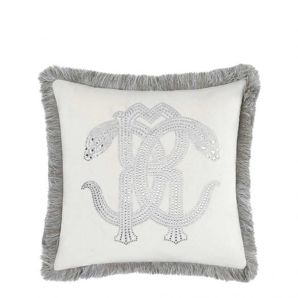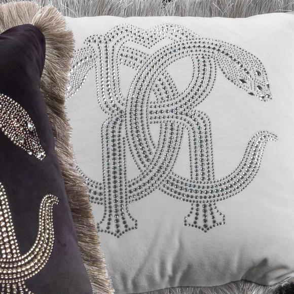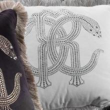 Available in two sizes and in two colours, the cushion adornes the Roberto Cavalli logo onto sumptuous velvet with stunning crystal detail.