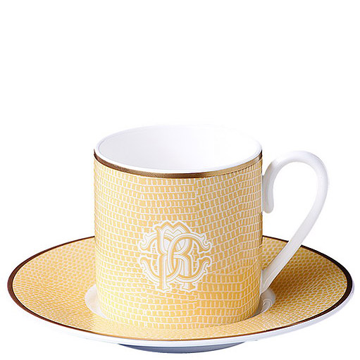 With a Lizzard skin embossed detail, a Roberto Cavalli logo and a fine gold coloured rim, this subtle but very elegant range can be used either on its own, or with one of Roberto Cavalli's heavily designed ranges to create a really stunning mix and match collection.