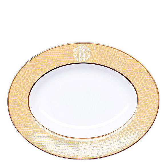With a Lizzard skin embossed detail, a Roberto Cavalli logo and a fine gold coloured rim, this subtle but very elegant range can be used either on its own, or with one of Roberto Cavalli's heavily designed ranges to create a really stunning mix and match collection.
