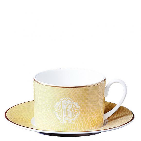 With a Lizzard skin embossed detail, a Roberto Cavalli logo and a fine gold coloured rim, this subtle but very elegant range can be used either on its own, or with one of Roberto Cavalli's heavily designed ranges to create a really stunning mix and match collection.