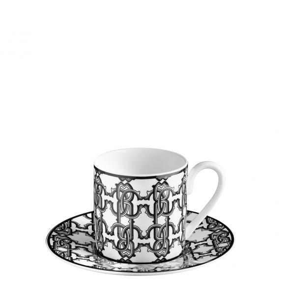 Unashamedly bold with a clever multi linked monogram around the cup and saucer.