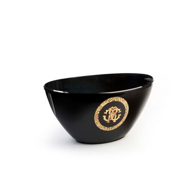 This stunning Monogramma Black wine cooler features a stylish gold Roberto Cavalli monogram printed on black methacrylate.