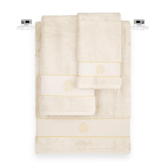 Featuring a Gold Monogram framed with a Gold Tramline border, this towel looks extremely inviting. This towel looks great left on display but you really have to use it to experience its true beauty. It is super soft, super thick, and oh so heavenly.