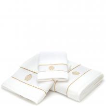 Featuring a Gold Monogram framed with a Gold Tramline border, this towel looks extremely inviting. This towel looks great left on display but you really have to use it to experience its true beauty. It is super soft, super thick, and oh so heavenly.