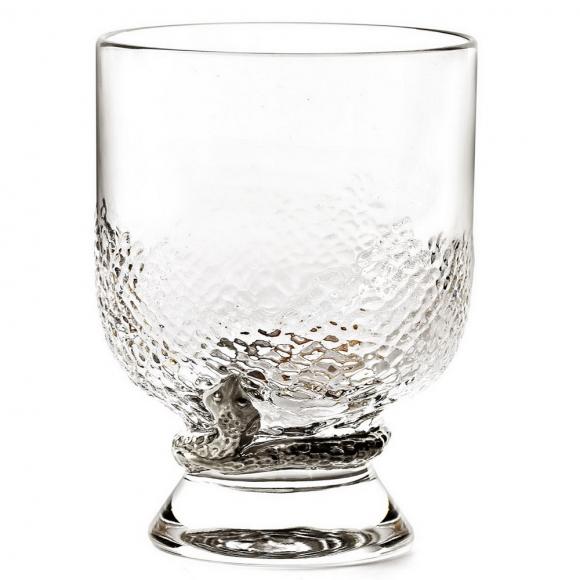 This beautiful lead crystal water glass is supported by a silver python wrapped around its stem. Who will get to water first?