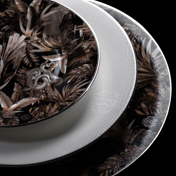 Sitting on beautiful fine bone china this jungle design with its tropical foliage, animal print and signature snake really makes a statement