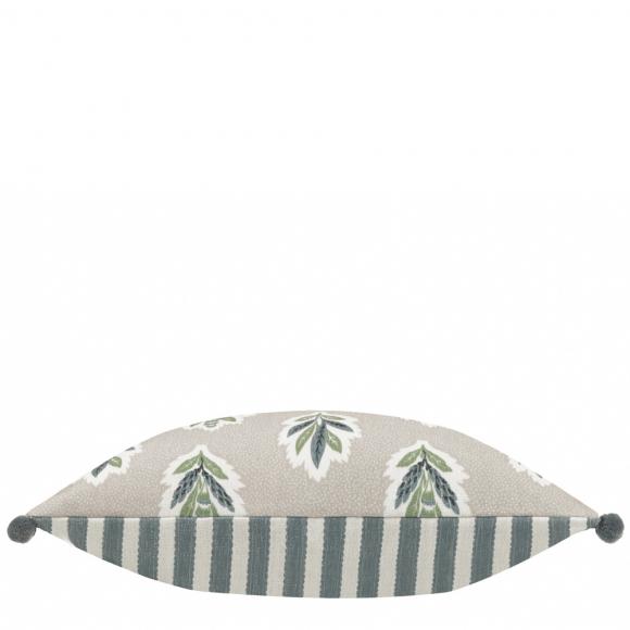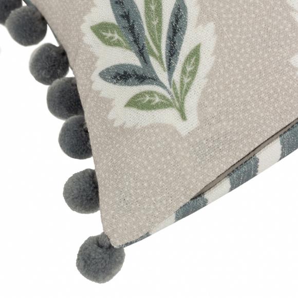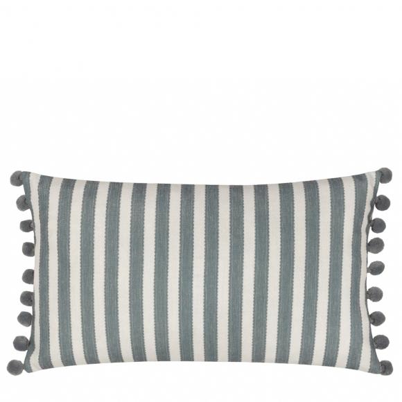 This pom pom cushion is available either filled or as a cover only. The contrast stripe reverse fabric and contrast coloured pom pom trim give it a fabulously inpired design flair
